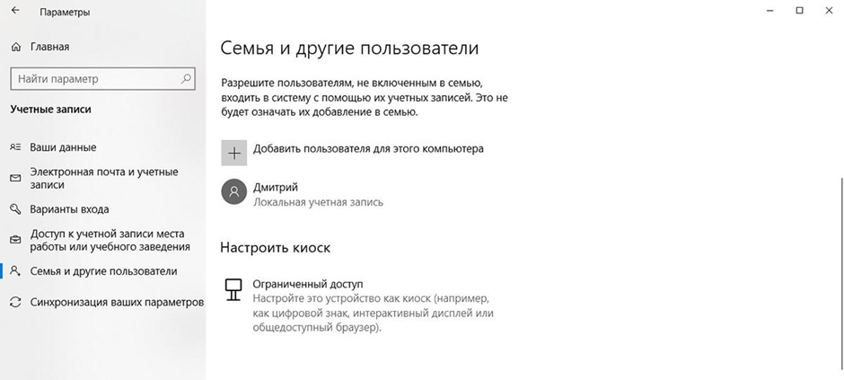 • Кликают в окне ссылку слева «Семья и другие пользователи».