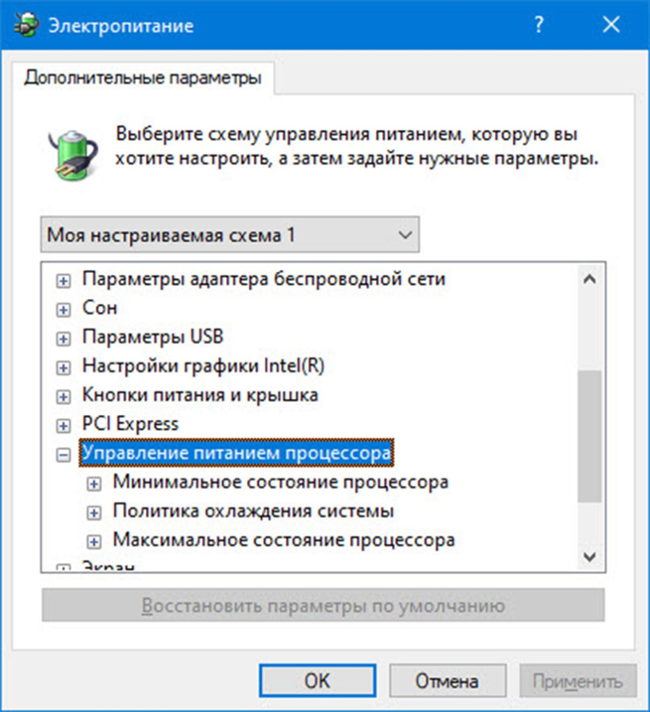 3. В разделе «Управление питанием процессора» кликают «Максимальное состояние».